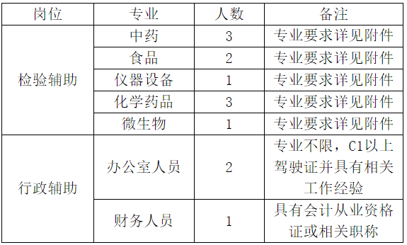 根據(jù)工作需要,大同市食品藥品檢驗檢測中心委托大同市勵瑞勞務派遣有限公司招聘檢驗輔助人員10名,行政輔助人員3名,用工形式為勞務派遣,現(xiàn)將有關事項公告如下: